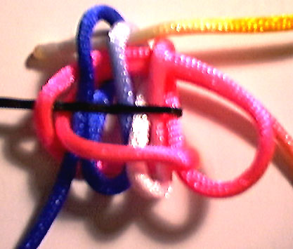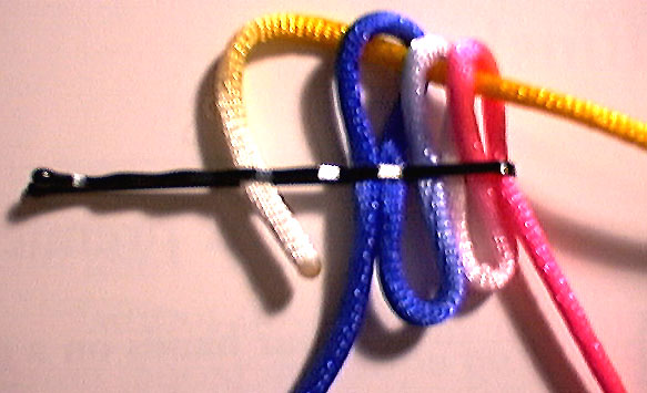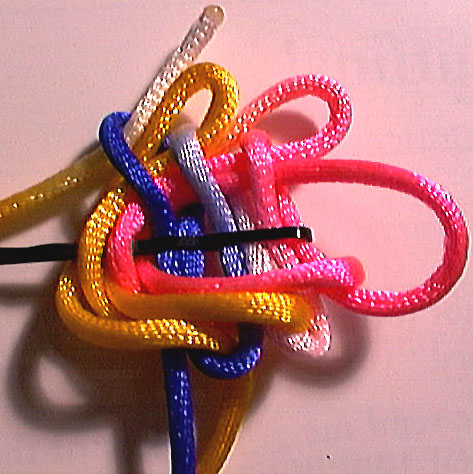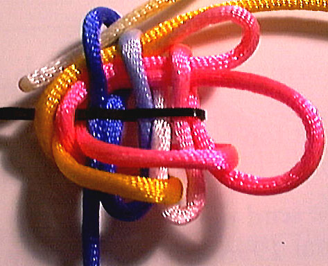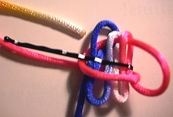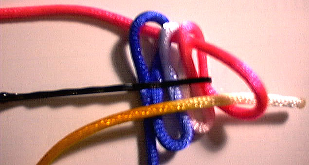 bring the path of the working end back under the fixed end, then back through the first two top loops